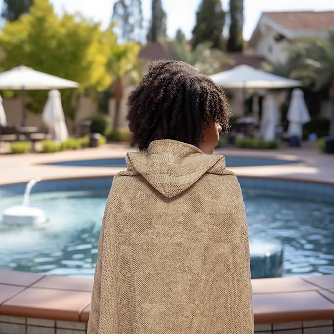 - Perfect For Indoor and Outdoor Use: These hooded luxury towels are woven with a granular rice texture and striped details, adding modern elegance to your bath both kids and parents will love. This bath towel is perfect for indoor and outdoor use as a bathroom, home, beach, or pool accessory. Large enough to let kids keep this towel wrapped comfortably around them.