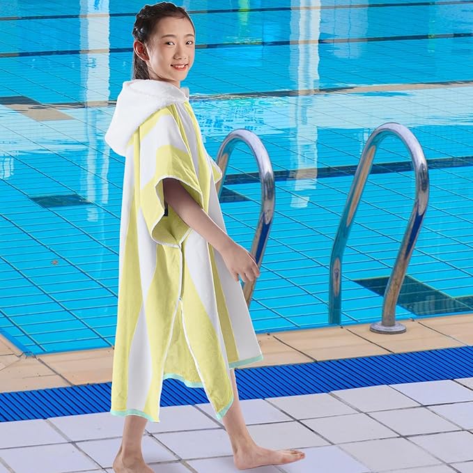 - Large Size: Our oversized hooded beach pool towel poncho measures a full 74"x37" in length and folds to a compact 37"x37" (excluding the hood), Designed to comfortably fit big kids (8 years old and up) and teenagers