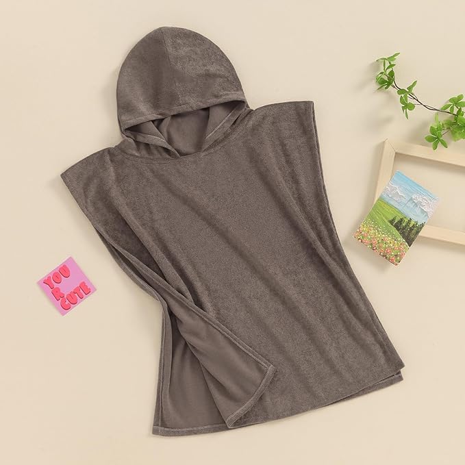 Toddler Beach Towel with Hood Kids Waffle Swim Cover Up Bath Towel Surf Poncho Boys Girls Hooded Beach Towel (B Brown, 6-12 Months)