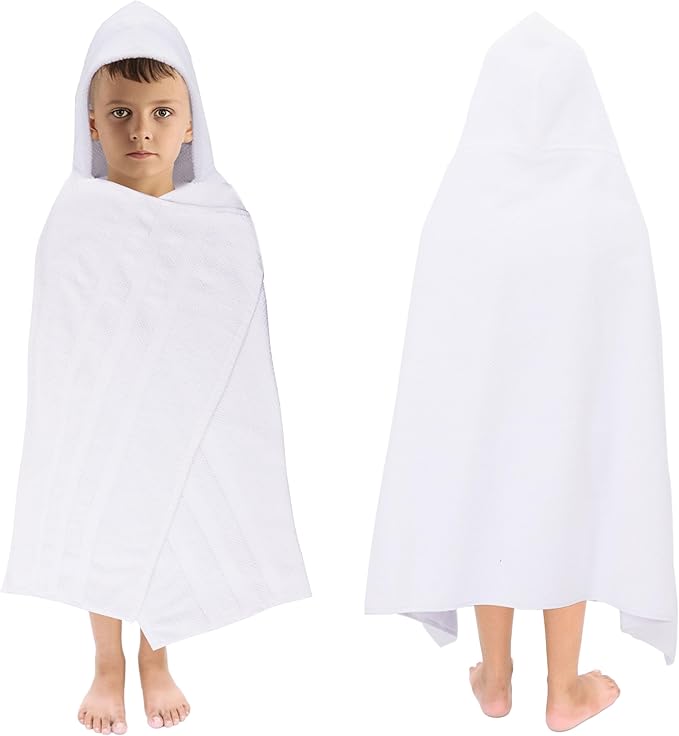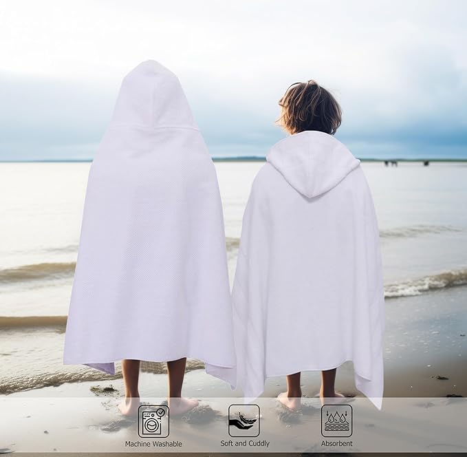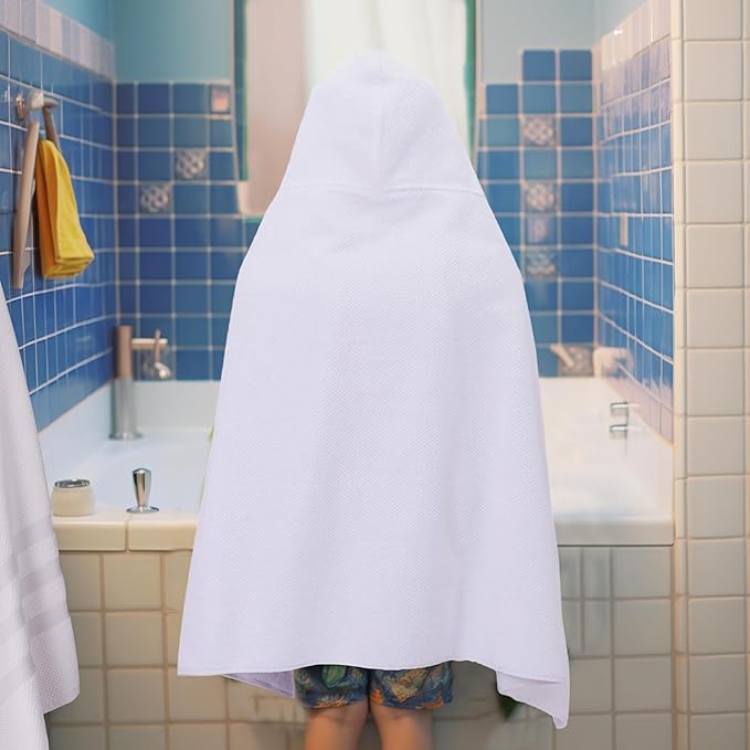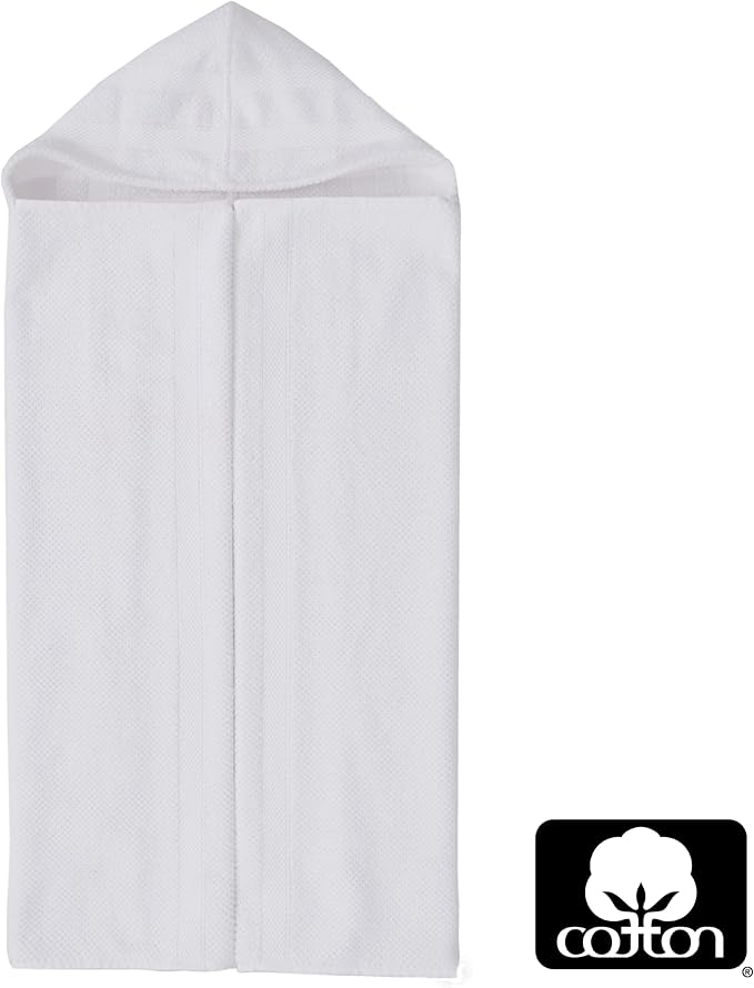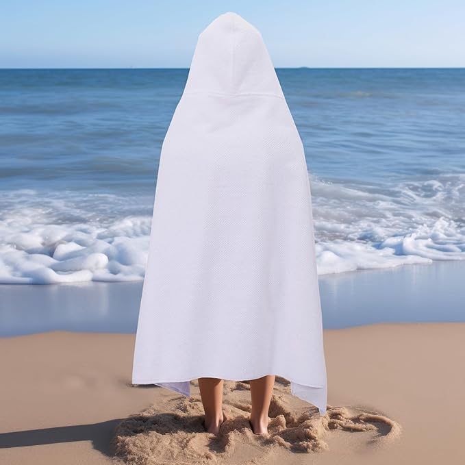 Hooded Bath Towel Wrap - 100% Cotton Popcorn Large Oversized Hooded Kids Towel - Toddler Shower Pool Beach Towel -600 GSM- Soft Absorbent Quick Dry Easy Care Gift - 30x52 inches - White