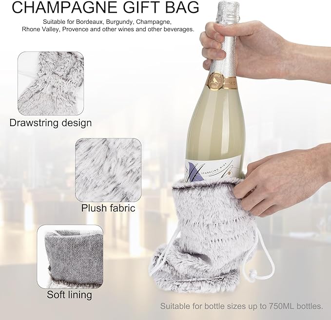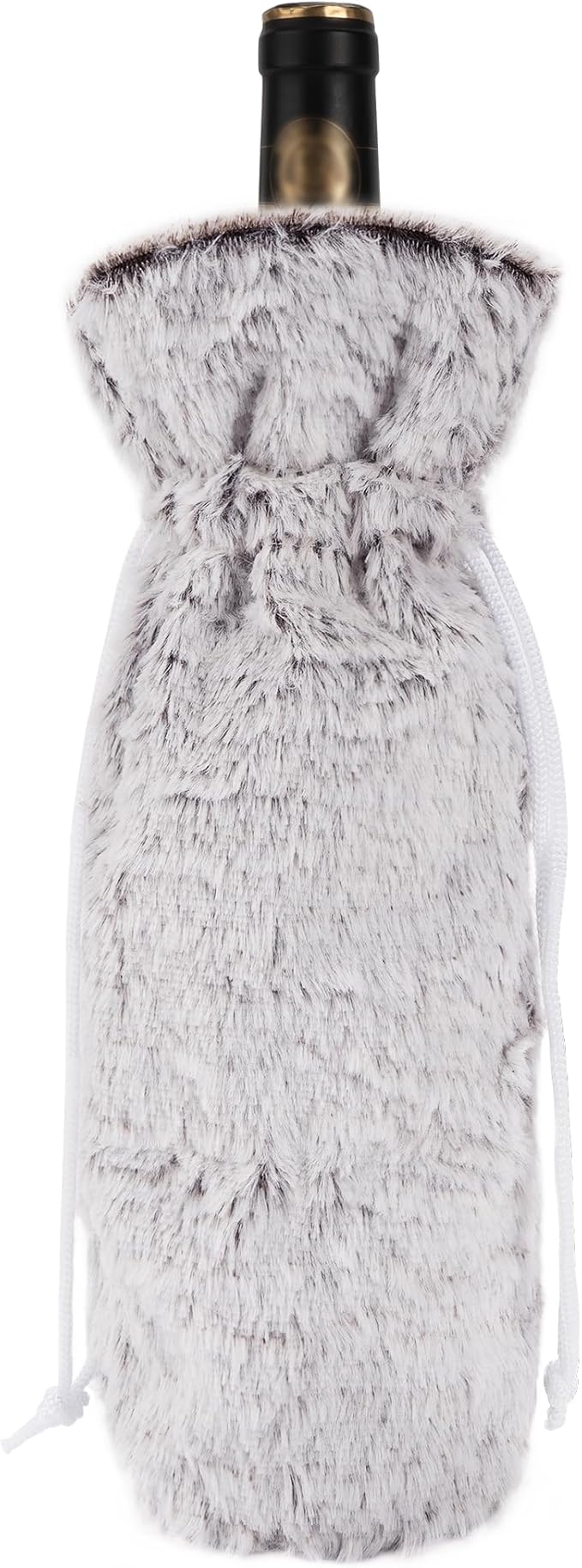 Wine Gift Bags Christmas Champagne Gift Bag for Engagement Wedding Birthday Wine Bottle Cover Decorative Fluffy Plush Drawstring Bag for 750ml Wine Bottles (Gray, 1 Pack)