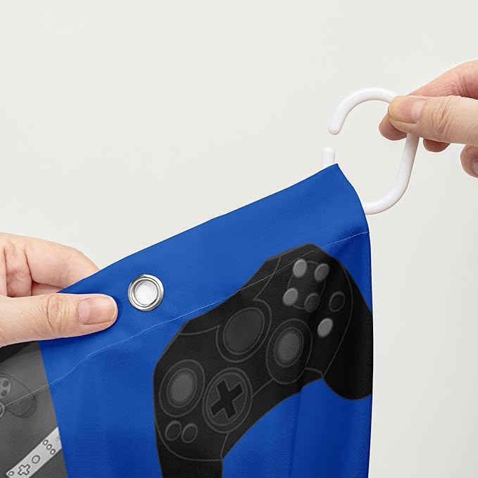 AILONEN Gamepad Shower Curtain,Navy Blue Ball Sports Bathroom Shower Curtain Sets for Boys Kids Teens, 36" W*72" H Gaming Gamer Theme Shower Curtain for Bathroom