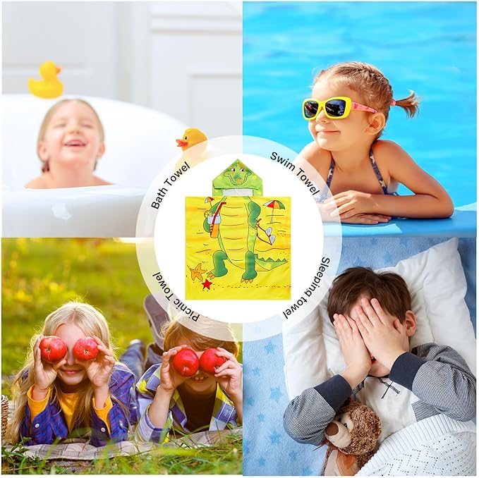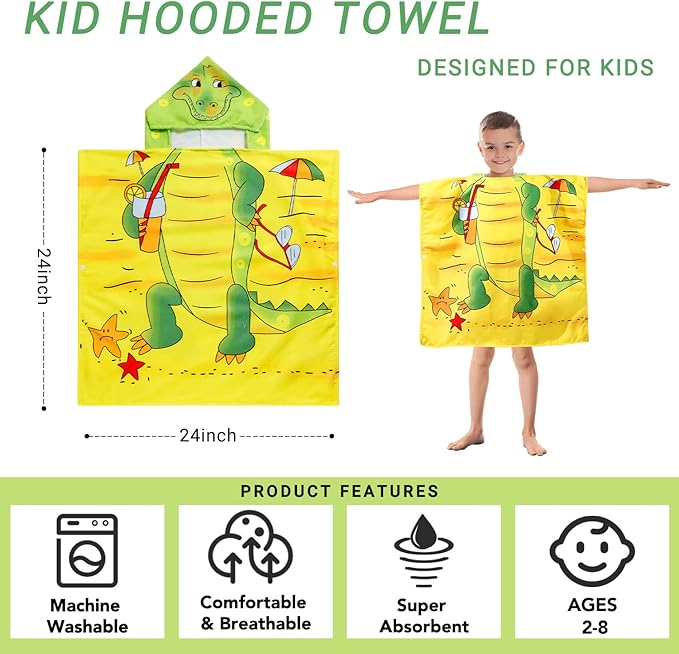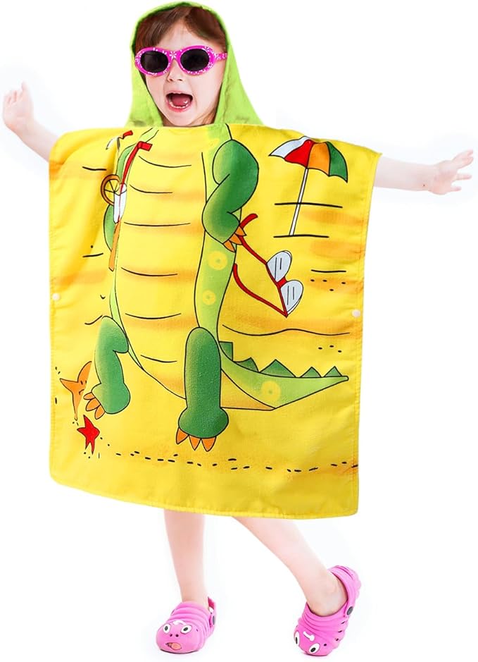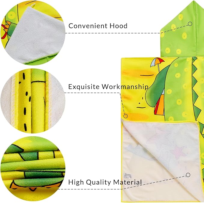 - 【Soft & Skin-friendly Fabric】 This cute hooded bath towels for toddlers are made of high quality cotton fiber and polyester, breathable and comfortable. As the best choice of beach towels for kids, the soft cotton towels are thick but lightweight, super absorbent, quick dry and sand free, keeping body dry and warm after swimming or shower.