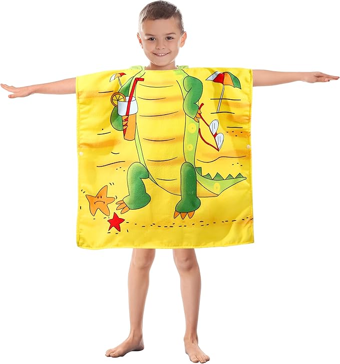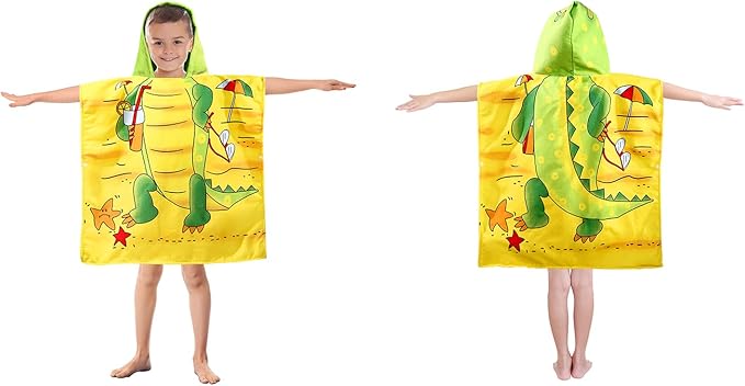 Kids Crocodile Hooded Beach Towel Boys Cute Poncho Pool Towels with Hood 24*47 in Soft Microfiber Swim Cover-ups for Kids Ages 3-10 Thick Absorbent Cotton Hooded Bath Towels Wrap Bathrobe