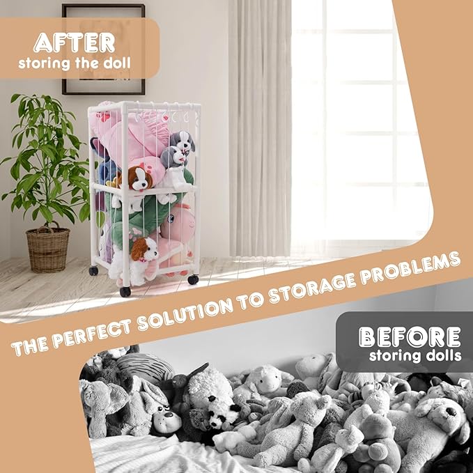 - PERFECT STUFFED ANIMAL DISPLAY --- Featuring a wide opening at the top, our storage cage allows for easy access to your plush toy collection. And simply lift the elastic cord to easily remove your favorite toy or add a new one to your collection!
