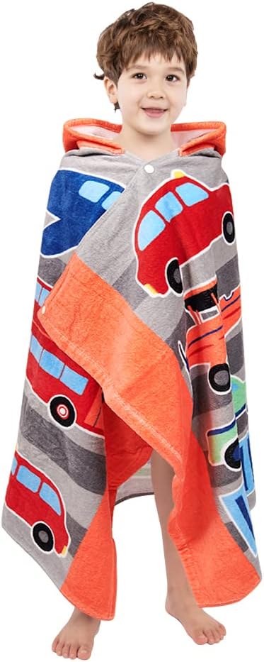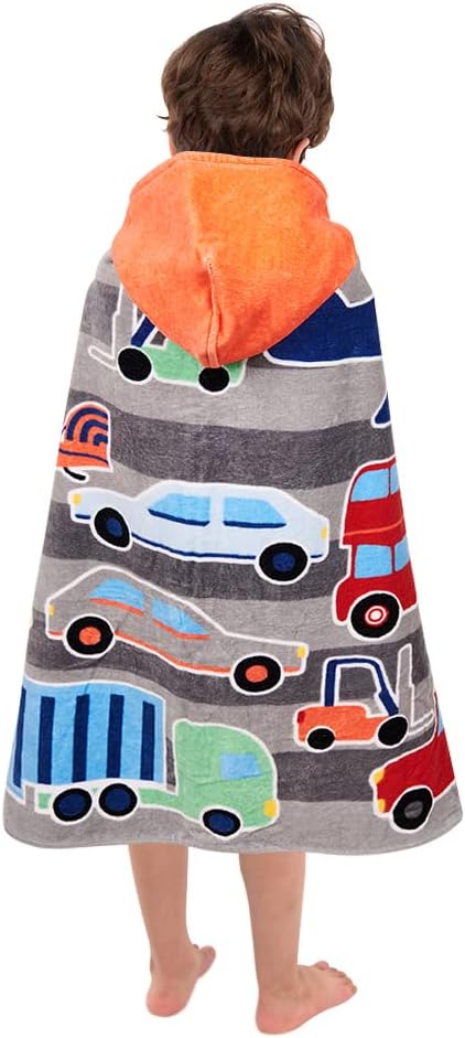Kids Hooded Bath Beach Towel Girls Boys, Super Absorbent & Soft Towel Poncho for Shower/Beach/Pool Child Cover ups 50"x30" Large Towel Wrap (Car Pattern)