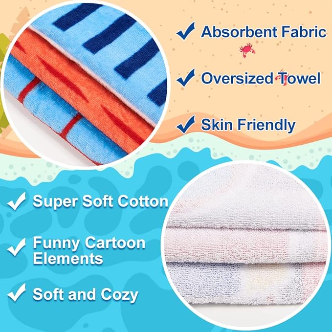 - [100% COTTON] : This kid beach towel is made of 100% cotton, soft, breathable, skin friendly and absorbent.Machine wash or hand wash, you can throw the kids' hooded towel into the washer and dryer without worrying about the fading color and lint.