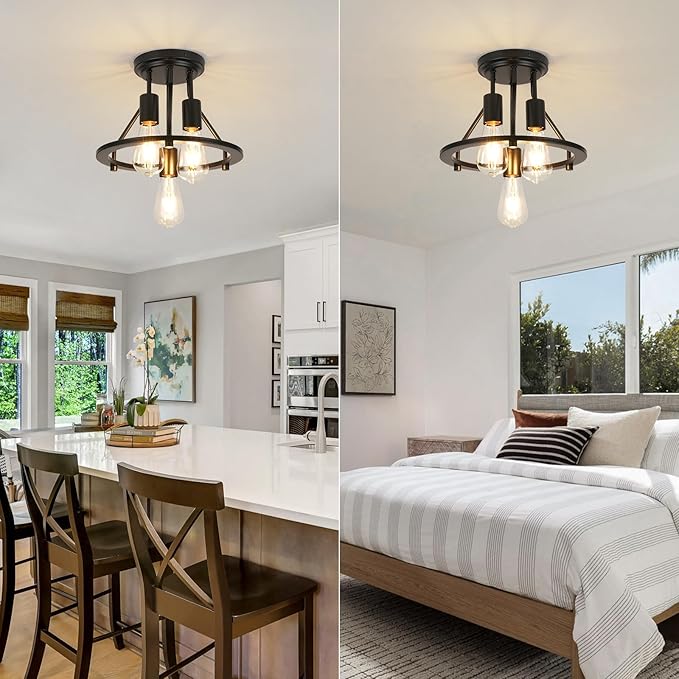 - ✅【Exactly Wide Applications】This farmhouse light fixtures ceiling mount mixes traditional style with modern geometric shape. The elegant semi flush mount ceiling light can be used as kitchen ceiling lights fixtures, hallway light fixtures, dining room light fixture, foyer ceiling light fixtures.