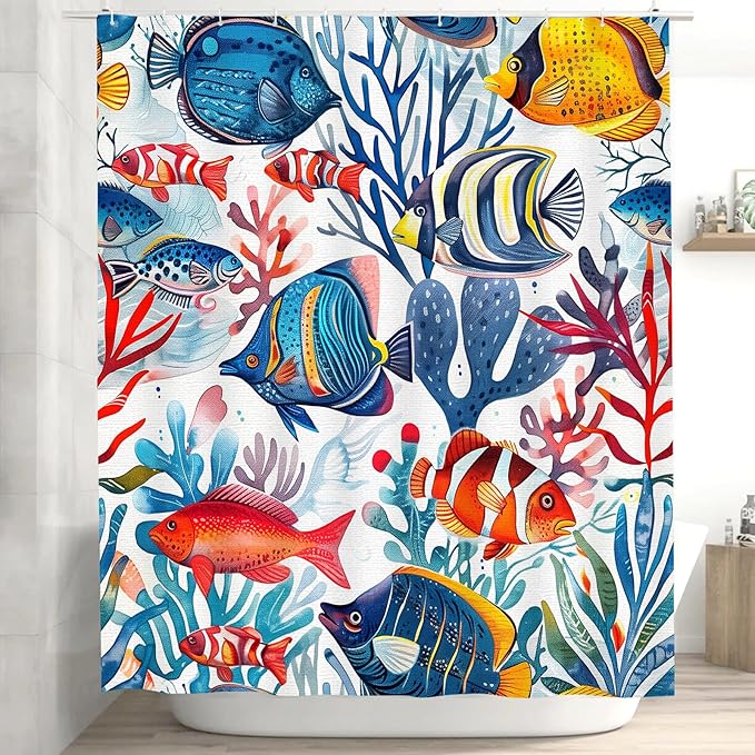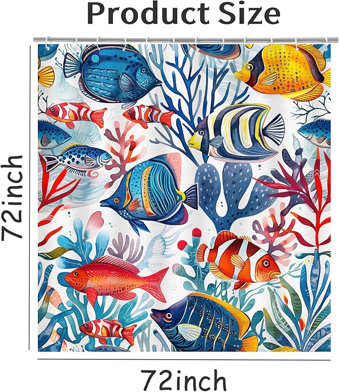 Fish Shower Curtain for Bathroom Tropical Fishes Shower Curtains Home Bathroom Bathtubs Ocean Underwater World Tropical Fish Decor Polyester Shower Curtain Waterproof Washable 12 Hooks 72"x72"