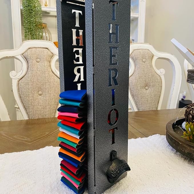 Can Cooler Holder with Bottle Opener 2 in 1 Personalized Wall Mounted Holder Organizer, Metal Beer Can sleeves Storage Organizer and Dispenser for Home Family Bar