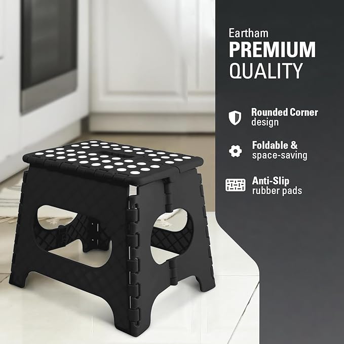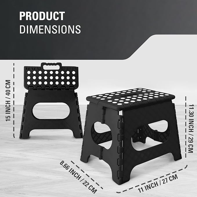 - Versatile Usage: Ideal for reaching high shelves in the kitchen or assisting in the bathroom, this stool is versatile enough for multiple uses. Its black color complements any home decor, blending seamlessly with your interiors.