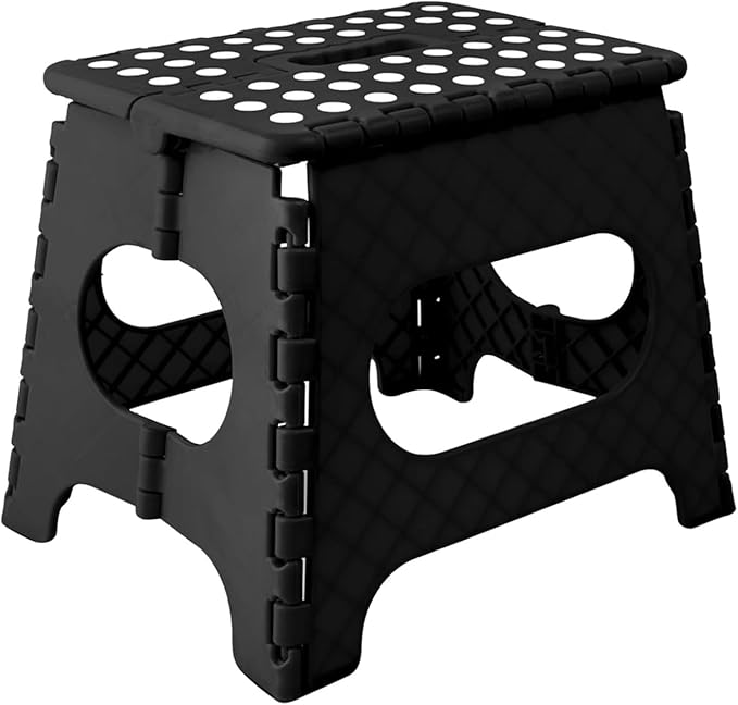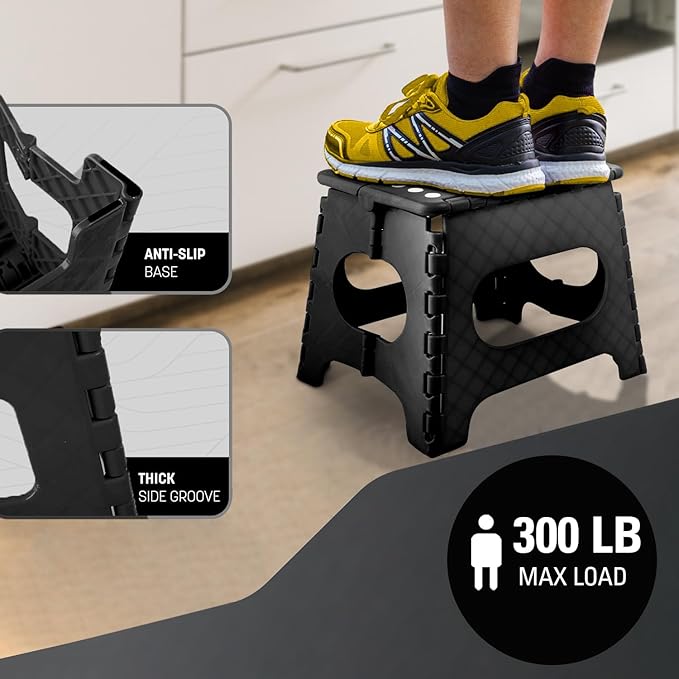 Folding 11inch Lightweight Step Stool - Compact & Portable - Sturdy Non-Slip Design for Kitchen, Bathroom - Durable & Space-Saving - Weight Capacity up to 300lbs - Black - Ideal for Adults and Kids