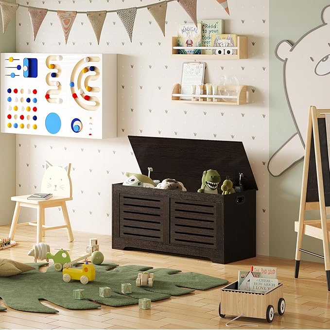 - 【Sturdy & Durable】The kids toy chest is made of safe engineered wood and superior craftsmanship. It is sturdy and durable to effectively prevent chemical reactions between the rubber staffs and the wood chest surface. Easy to wipe clean and upkeep. Your cost-effective choice