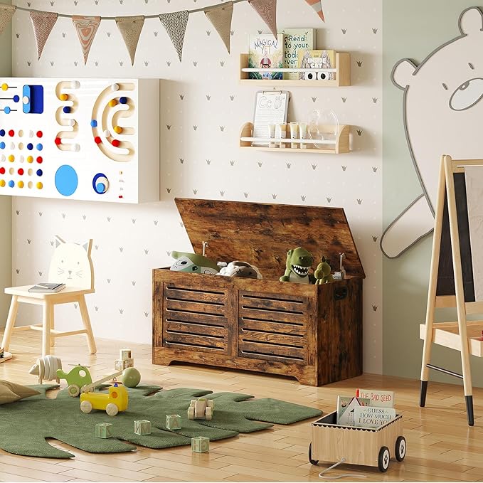 - 【Sturdy & Durable】The kids toy chest is made of safe engineered wood and superior craftsmanship. It is sturdy and durable to effectively prevent chemical reactions between the rubber staffs and the wood chest surface. Easy to wipe clean and upkeep. Your cost-effective choice