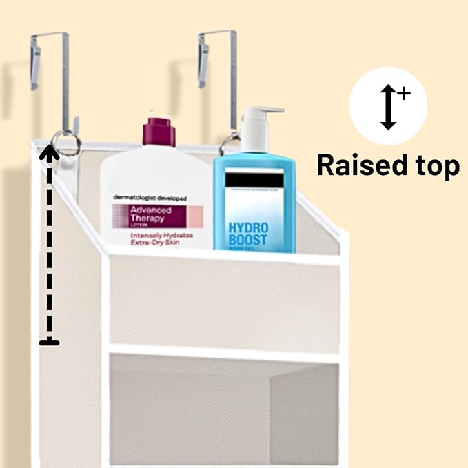 - 【2 Supporting Hooks &6 Mesh Side Pockets, Reliable and Convenient】 You can hook it on all the regular thick doors (1.4”~1.73”). It also have 6 mesh pockets on the side for small items like keys and combs or flip flops and frequently used stuffs, keep your essentials at your fingertips.