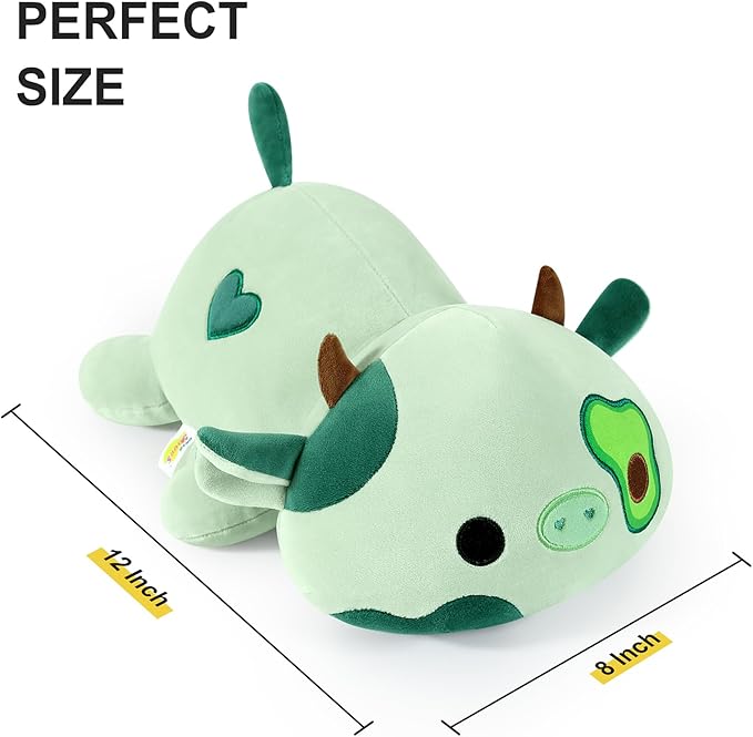 - Material: Avocado cow plush is filled with elastic cotton which is softer than ordinary, skin-friendly fabrics give you better skin touch feeling, make the pillow way soft and comfortable.
