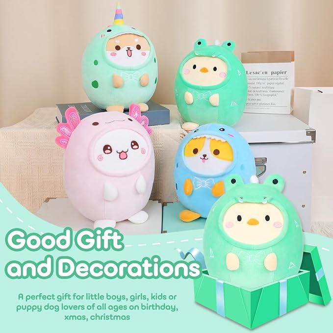 Cute Plush Crocodile Chicken Stuffed Animal Pillow, 8" Soft Kawaii Chick Plushie with Crocodile Outfit Gift for Kids