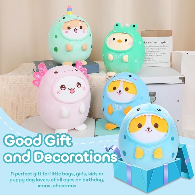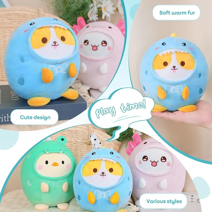 Cute Plush Corgi Dinosaur Stuffed Animal Pillow, 8" Soft Kawaii Shiba Inu Corgi Plushie with Dinosaur Outfit Gift for Kids
