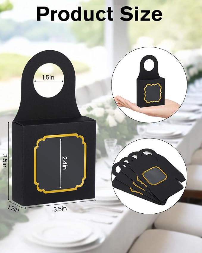 - Each box measures approximately 3.5 x 3.5 x 1.2 inches well-sized to hold not just wine bottles but also mini champagne bottles, candy, or delicate favors for your guests