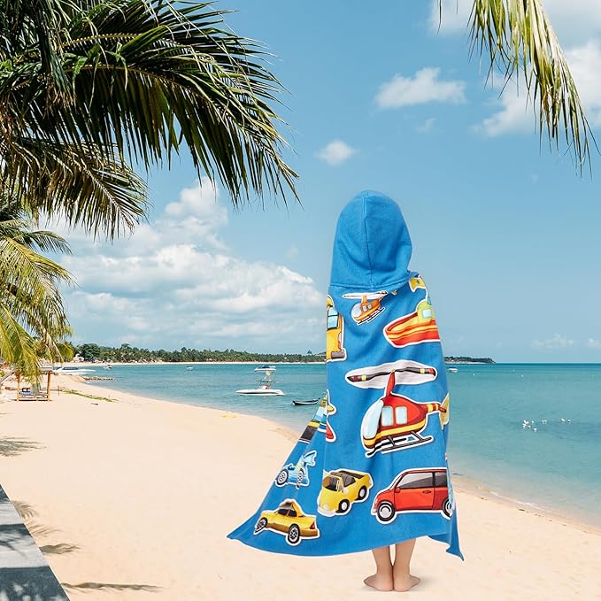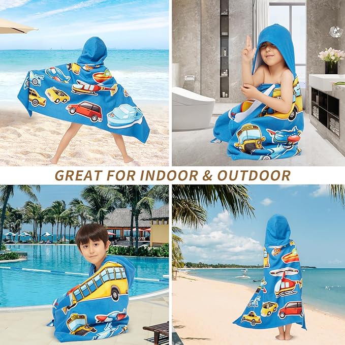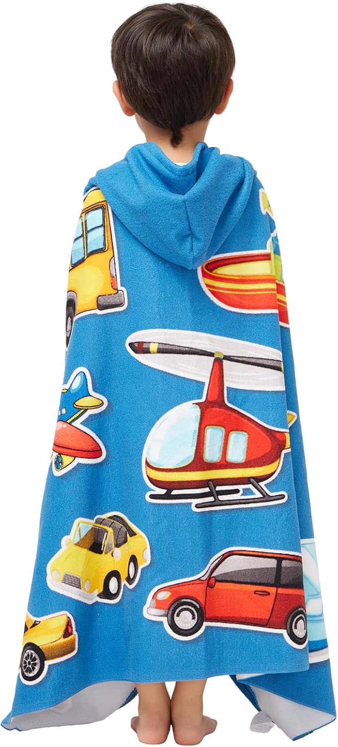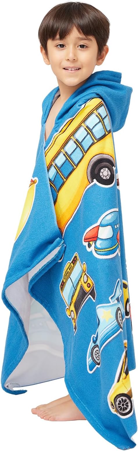 Hooded Towel for Toddlers 5-12 Years Boys Girls Kids Bath Pool Beach Towel Wrap Extra Large Soft Absorbent Beach Poncho(Cars XL)