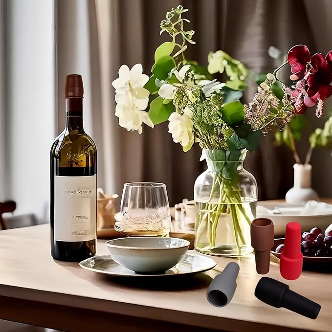 - đ„ăHigh quality materialăThe wine stopper is made of High quality food grade silicone, which is durable and reusable.Whether as a gift or for your own use, these stoppers are a must-have addition to your wine accessories.