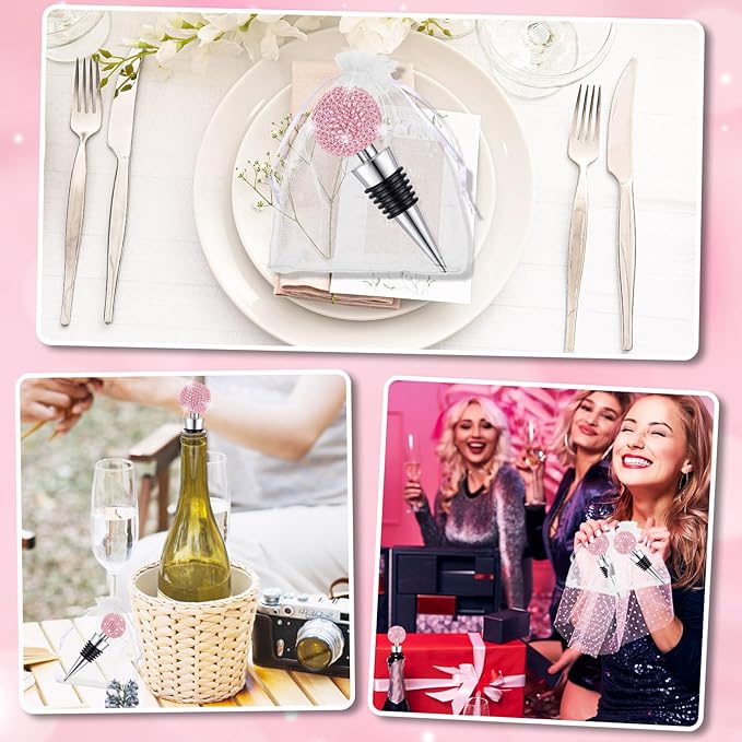 - Elegant and Shinny: the reusable wine bottle stoppers are decorated with diamonds, looking shinny and elegant, can be presented as gifts to women and girls, also can be decorations, adding a charm and aesthetic to your wedding; The sheer bags help you store the stoppers better, and the stoppers in the bag are ideal for gift giving
