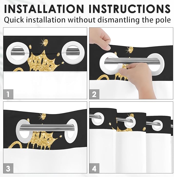 - [ No Hook Shower Curtain Set ]: Install in 20 seconds without the hassle of annoying and messy hooks, and no need to remove the rod! Made from 100% polyester,our shower curtain is not only waterproof and stain-resistant but also dries quickly.