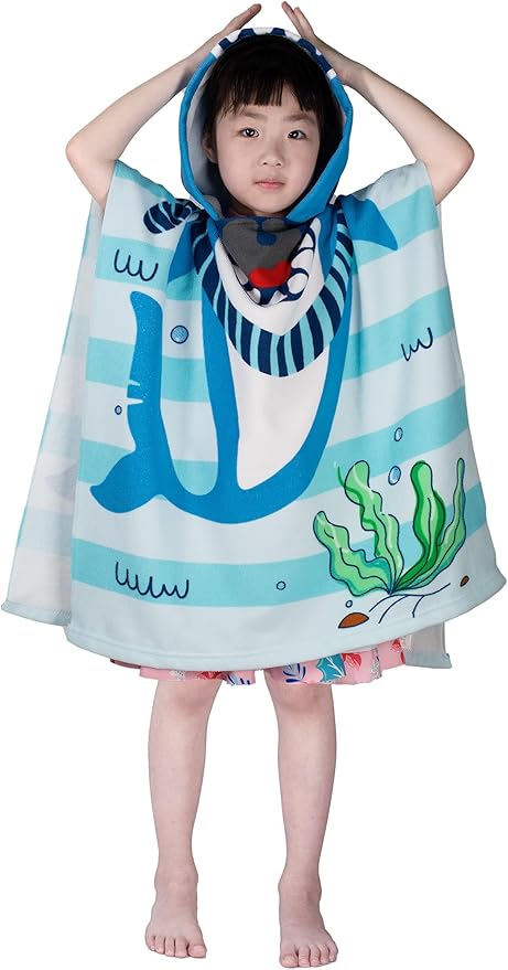 - 【Multi Uses】There's enough room to wrap around and cuddle up in. This poncho beach towels for kids are designed to dry their body or keep warm for kids, girls, and boys. It’s great for after the beach, pool, or bath, as well as to cover up before and after swim lessons. The size is 24"W x 24"L for kids around 27" to 46" height.