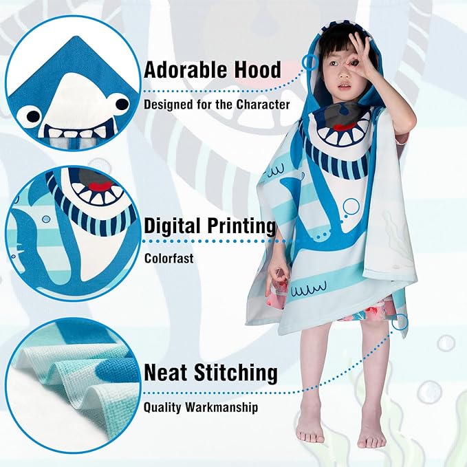 - 【Ultra Soft】This hooded beach towel for kids is made of microfiber. The fabric is softer and comfortable. Kids will love the nice feel which is as soft as cloud. The microfiber gets softer and cozy overtime and over washing.