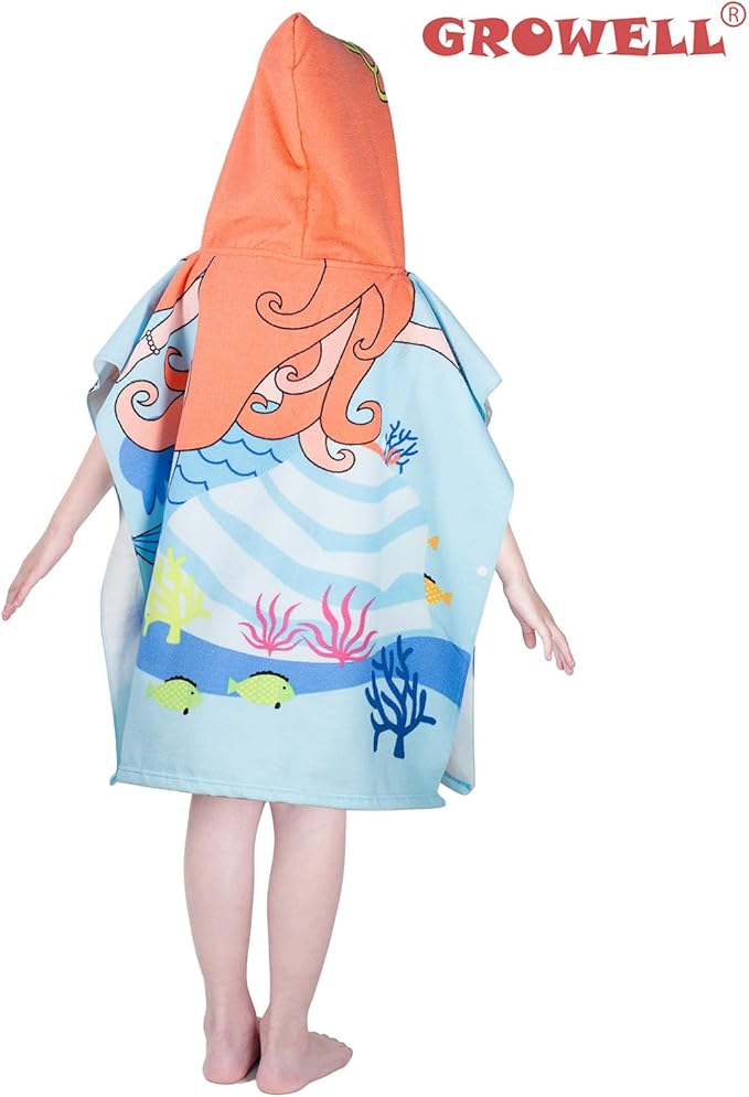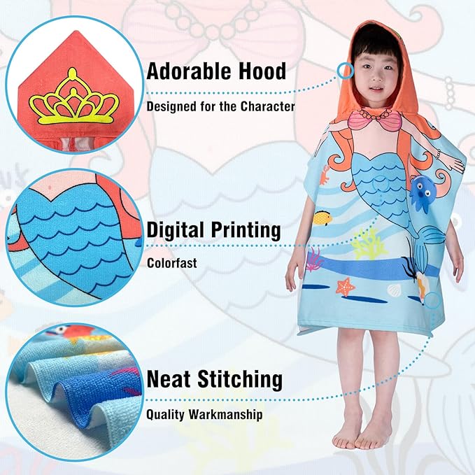 - 【Multi Uses】There's enough room to wrap around and cuddle up in. This poncho beach towels for kids are designed to dry their body or keep warm for kids, girls, and boys. It’s great for after the beach, pool, or bath, as well as to cover up before and after swim lessons. The size is 24"W x 24"L for kids around 27" to 46" height.