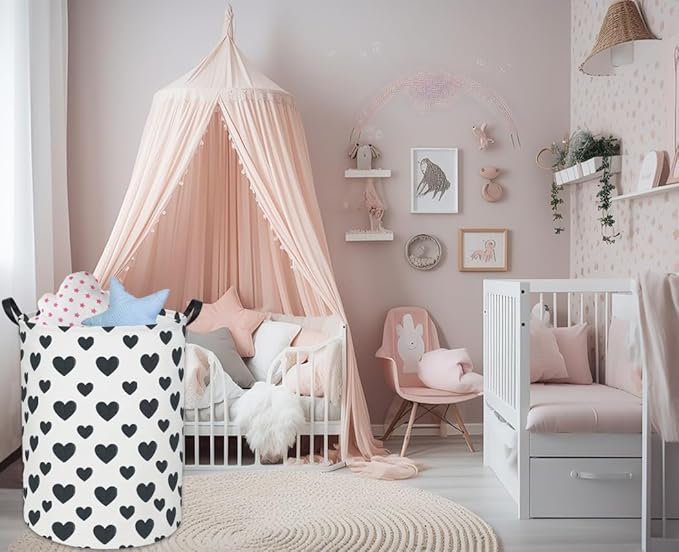 Black Heart Kids Laundry Basket Baby Hamper Black Heart Toy Storage Bin for Boys Room Decor Baby Nursery Hamper Gift Baskets for Bedroom Bathroom(Black Heart)