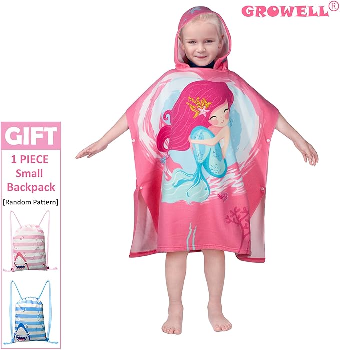 - 【Light Weight】Growell's kids hooded bath towels are for summer and not thick. The weight is 40% less than a traditional beach towel in terry cloth. The microfiber material is 3 times faster drying compared to cotton. These features keep kids dry and feel more comfortable with a light towel on. There's a small bag for this design as a gift.