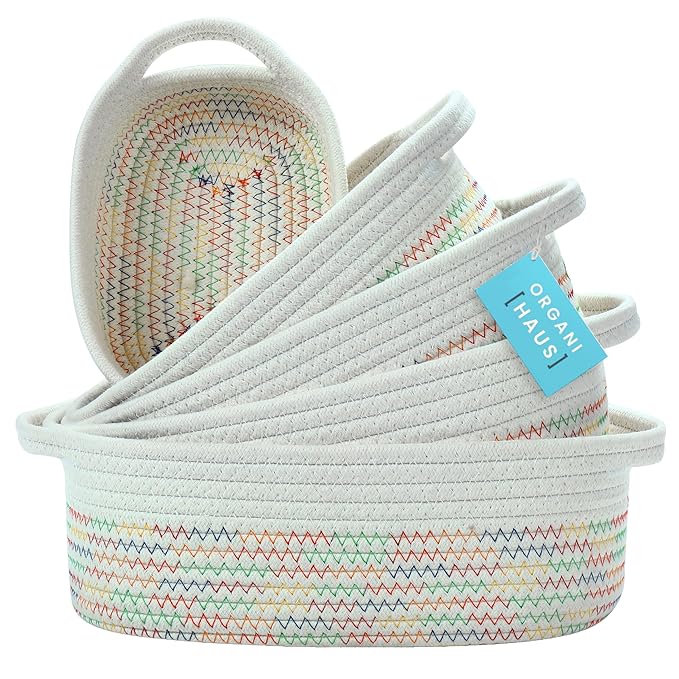 OrganiHaus Set of 5 Rectangle Bathroom Storage Baskets for Organizing, Small Woven Baskets for Storage Basket for Bathroom, Nursery Storage Basket for Baby Nursery Organization, Cute Bins, Rainbow