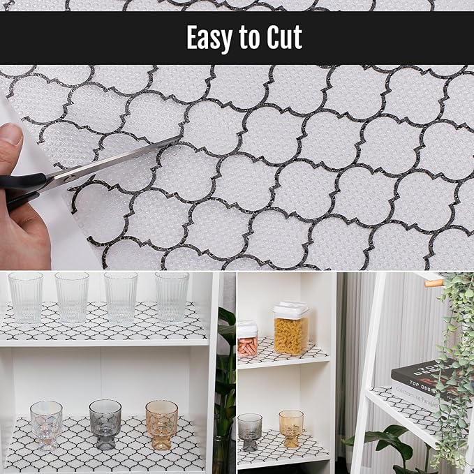 Cooyes Shelf Liner – Non-Slip Shelf Liners for Kitchen Cabinets – Waterproof Shelf Paper with Modern Pattern – Durable EVA Cabinet Liners