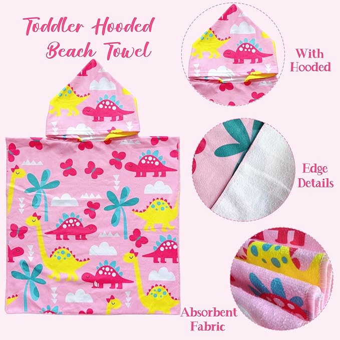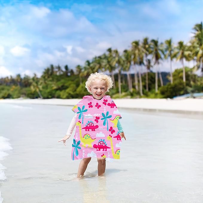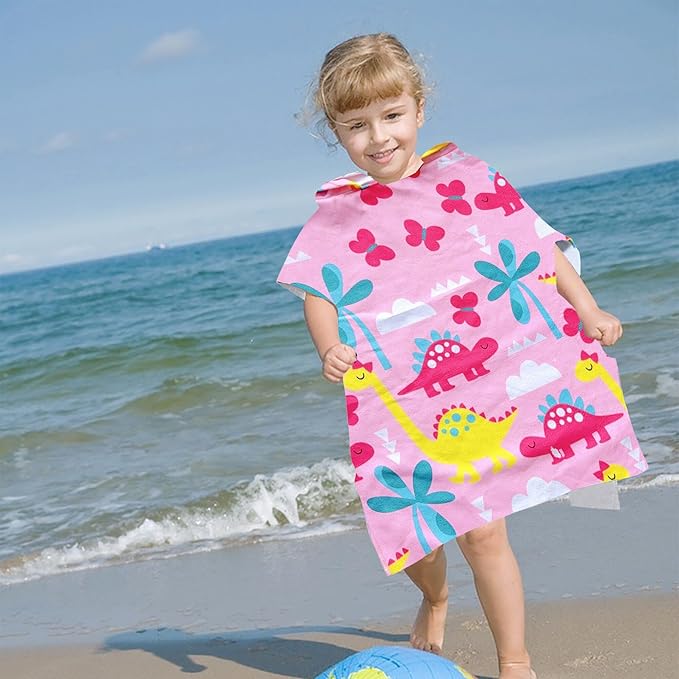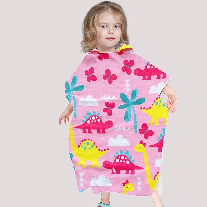 - CARTOON DINOSAUR: This kid hooded towel printing with dinosaur. The classic pattern keeps this beach towel stylish, while the adorable dinosaur adds to its appeal, instantly winning the love of children! The cartoon suit for boys and girls, making your child stand out at the beach or pool