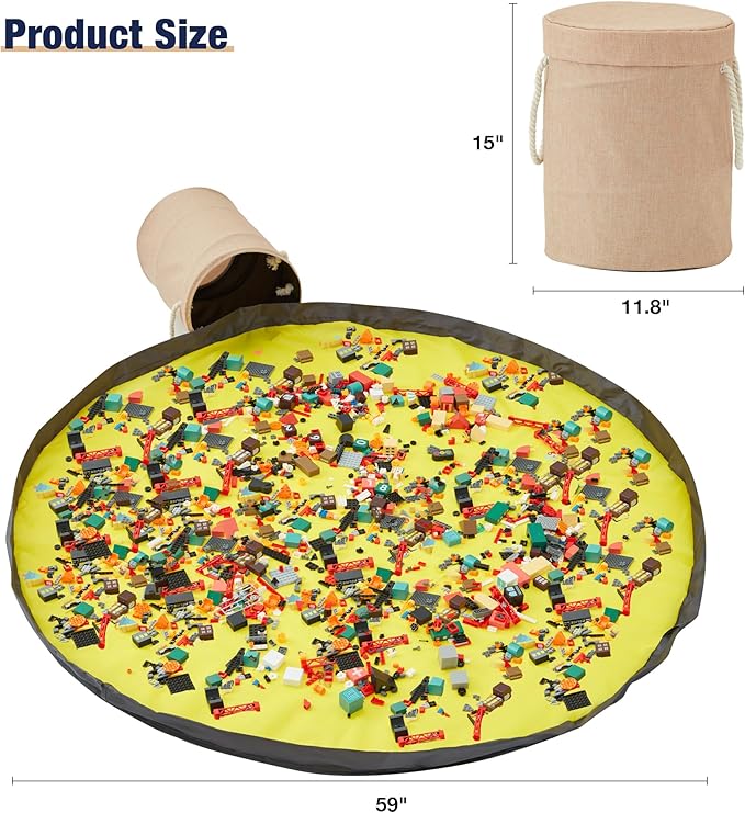 - Looks Better Storage-Our toy basket is a 11.8" wide x 15" tall , with a 59" playmat for creative play. Just use 1 bag for all your kid toys, cars, action figures, dolls.