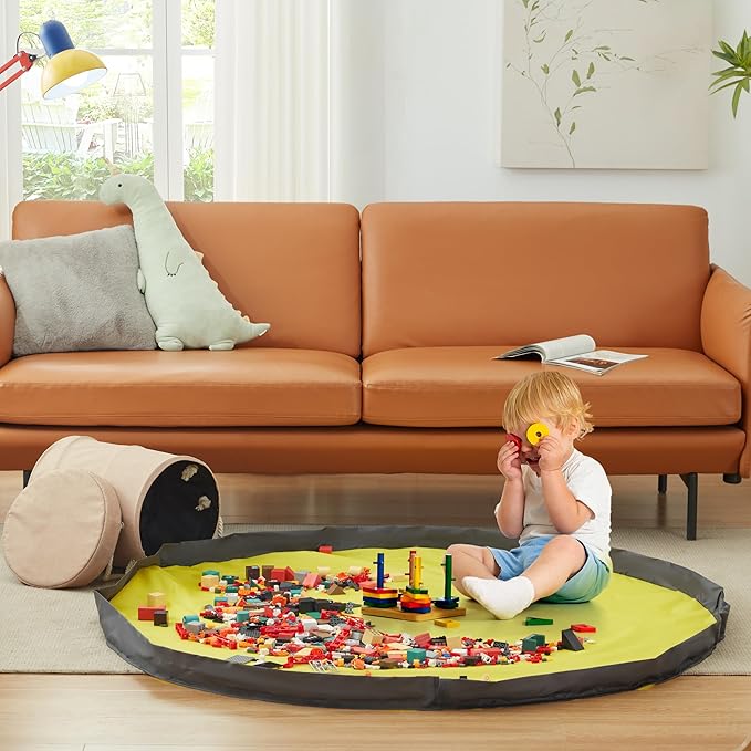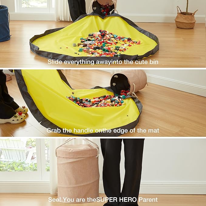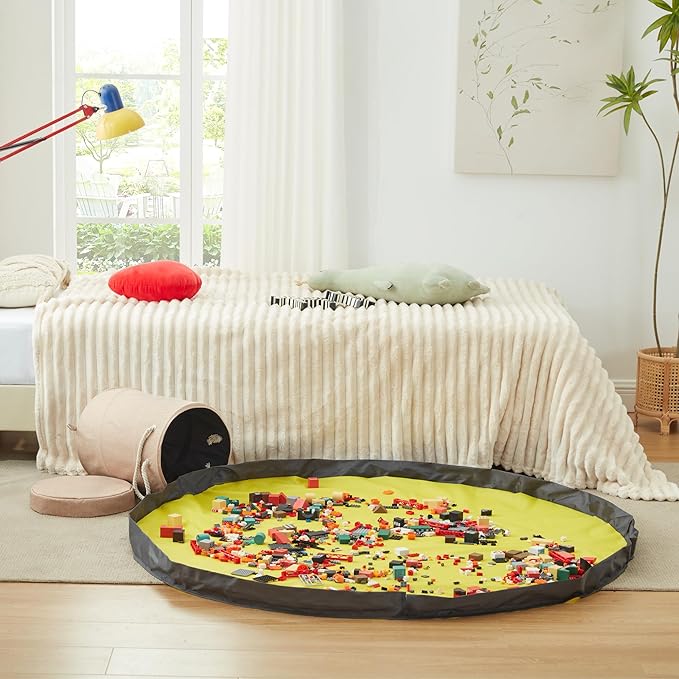 - Save Your Floors From Toy Clutter-This floor storage basket has an 59" integrated play mat that prevents your kid's toys from spilling off. Saves you precious time on cleanup.