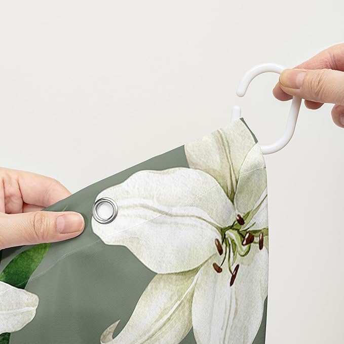 AILONEN Flower Shower Curtain, Vintage Garden Lilies Theme Waterproof Fabric Shower Curtain Set,Green Spring Flowers Bathroom Decor for Teen Girls Women,72" W*72" H