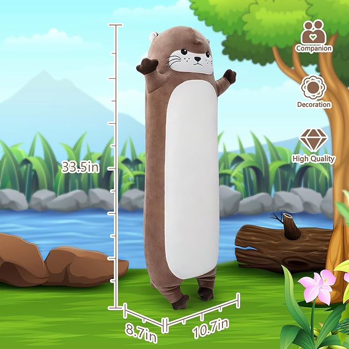 Large Otter Stuffed Animal,33.5” Long Otter Plush,Cute Plushies Animal Body Pillow,Kawaii Big Plush Toys Gifts,Animal Sleeping Hugging Pillow for Kids Adults Birthday