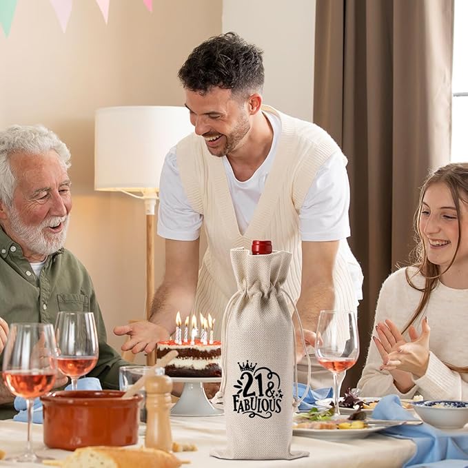 - 【21st Birthday Gifts Ideas 】Don't just stop at 21st birthday wine bag bottles! This fun 21st birthday wine bag is the perfect addition to a birthday party, and also it's a perfect gift idea, as it not only decorates the bottle, but is also suitable for storing all kinds of holiday gifts, making it a must-have item for you to celebrate all kinds of holidays and activities! Make every gathering a ritual!