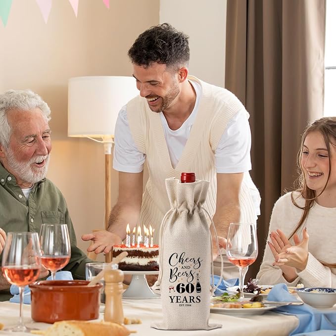 - 【60th Birthday Gifts Ideas】Don't just stop at 60th birthday wine bag bottles! This fun 60th birthday wine bag is the perfect addition to a birthday party, and also it's a perfect gift idea. Because in addition to decorating wine bottles, it can also store various holiday gifts, making every holiday full of ritual, making it a must-have for every holiday you celebrate!