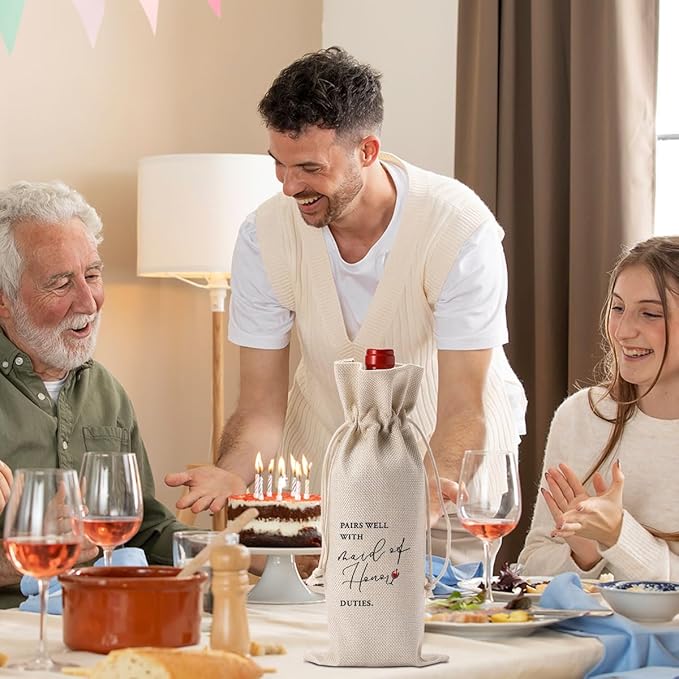 - 【Engagement Party Decorations】Don't just stop at maid of honor wine bag bottles! This fun bridesmaid wine bag is the perfect addition to engagement wedding party, and also it's a perfect gift idea. Because in addition to decorating wine bottles, it can also store various holiday gifts, making every holiday full of ritual, making it a must-have for every holiday you celebrate! You can even put it in a gift basket and give it to them as a gift.