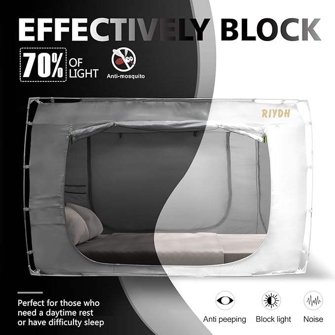 - Blackout Technology: When you close the bed tent's zipper, lying in the dark tent space, blackout 70% allows you to hallowing you to enjoy a more pure sleep in the night until dawn