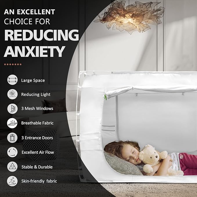 - Blackout Technology: When you close the bed tent's zipper, lying in the dark tent space, blackout 70% allows you to hallowing you to enjoy a more pure sleep in the night until dawn