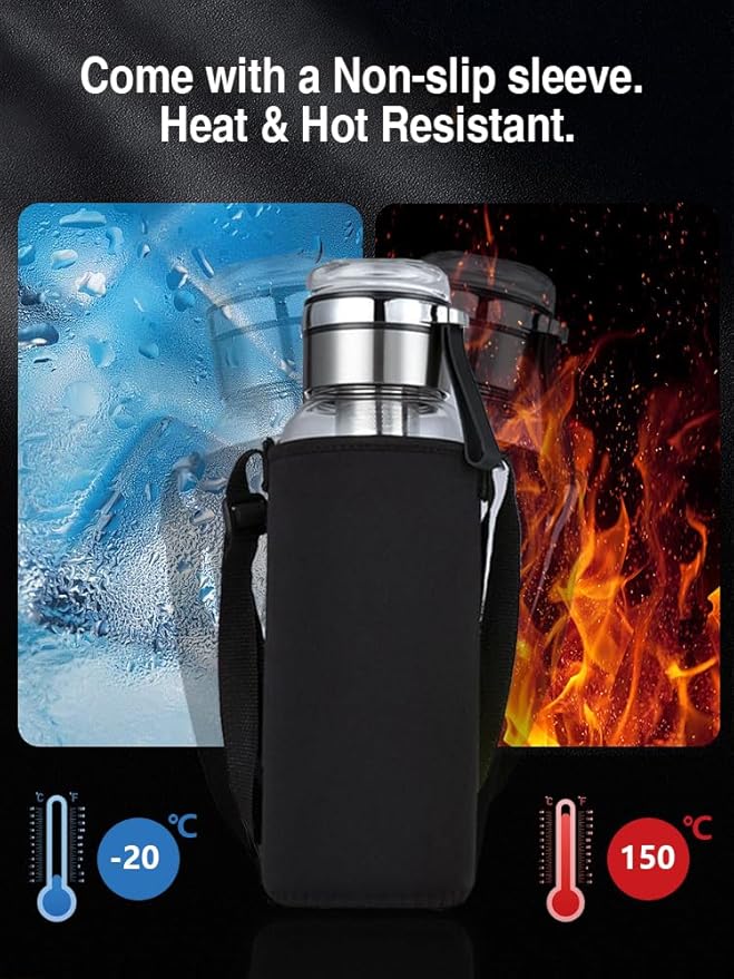 - 1. Enjoy your Drinking Safely: This water bottles are made of premimun borosilicate, whose temperature resistance range from -20°C to 150°C. This ensures your joyful drinking without any problem.