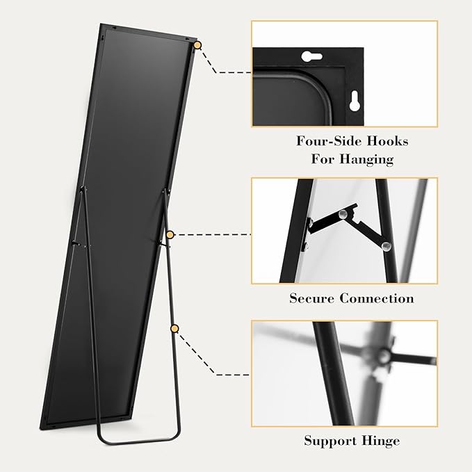 - 【High-tech materials】Full body mirror is made of superior nano tempered glass and one piece aluminum alloy frame that can effectively avoid cracking, it is sturdy, durable, anti-faded and shatterproof. Mirror high-definition imaging is not distorted, so you can keep a good mood throughout the day!