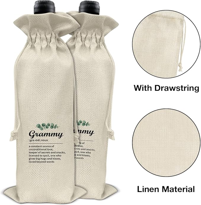 HOIJAUMAI Grammy Gift, Gifts for Grandma Birthday Mother's Day, Grandma Wine Bag Grammy Definition Wine Gift Bags