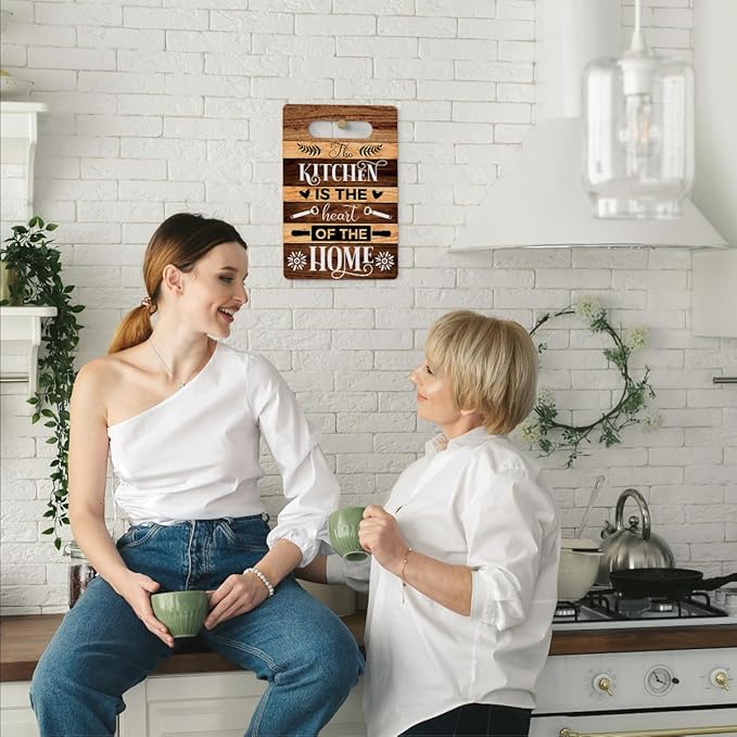 Farmhouse Kitchen Decor, Kitchen Signs Wall Decor, Wall Decor for Kitchen, Kitchen Door Wall Hanging Decor, The Kitchen Is The Heart of The Home Sign, Kitchen Gifts for Women 8 x 12 Inch