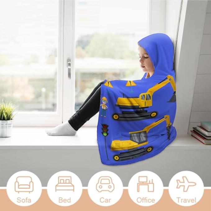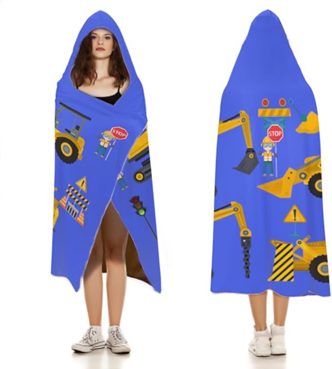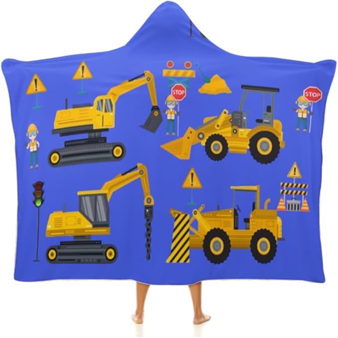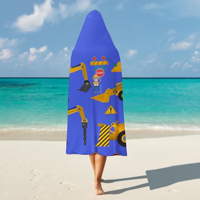 Kids Hooded Towels, Beach Bath Towel, Surf Poncho Toddlers Soft Thick Large Absorbent Cotton Wrap for Boy Girl, Shower/Beach/Pool 50"x30"(Construction)