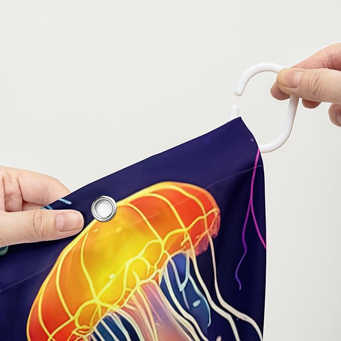 AILONEN Colorful Jellyfish Shower Curtain,Beautiful Jellyfish Bath Curtain Set for Kids Girls,Coastal Animal Fabric Shower Curtains for Bathroom, 72" W*96" H